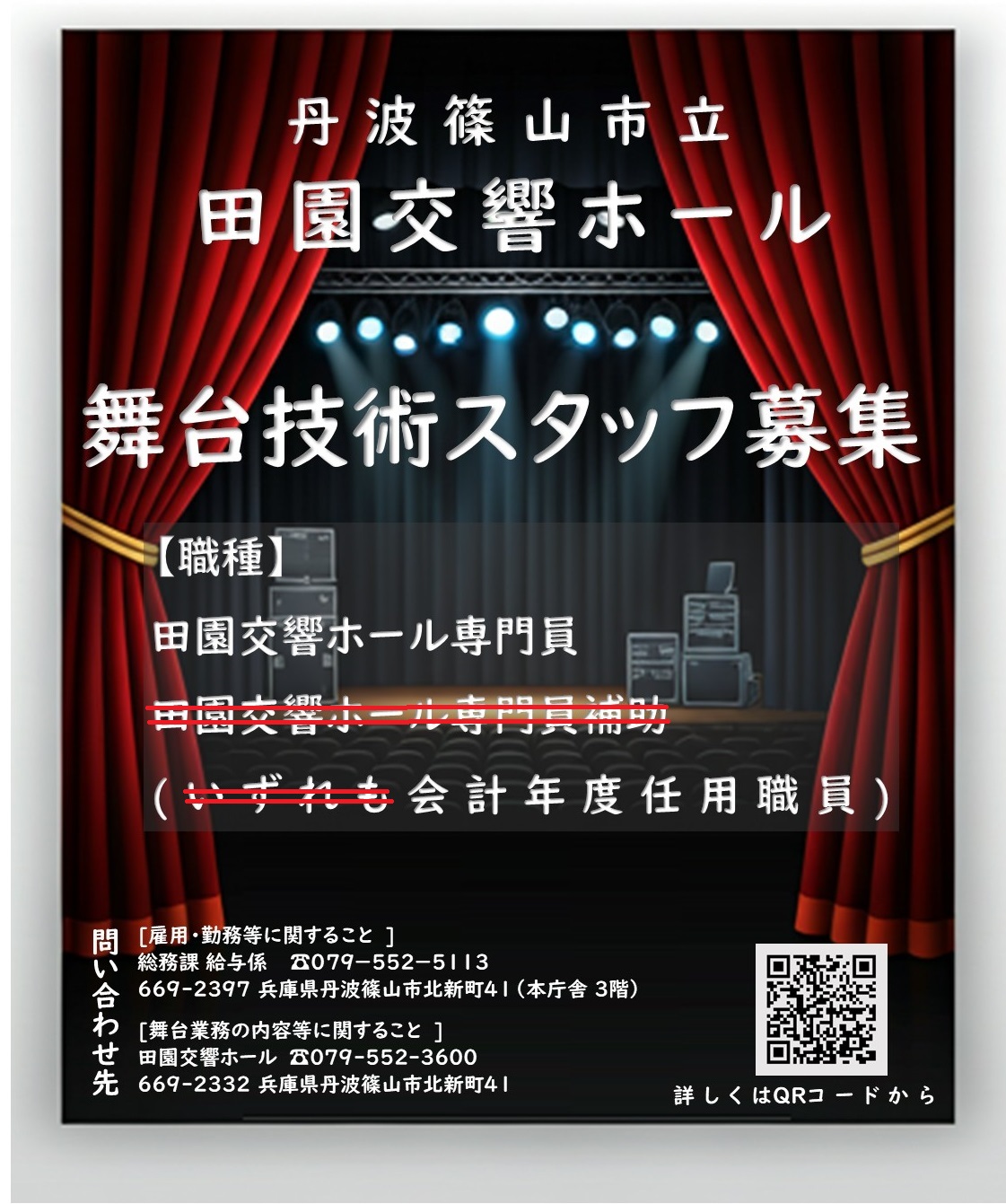 田園交響ホール 舞台専門員及(会計年度任用職員) 募集