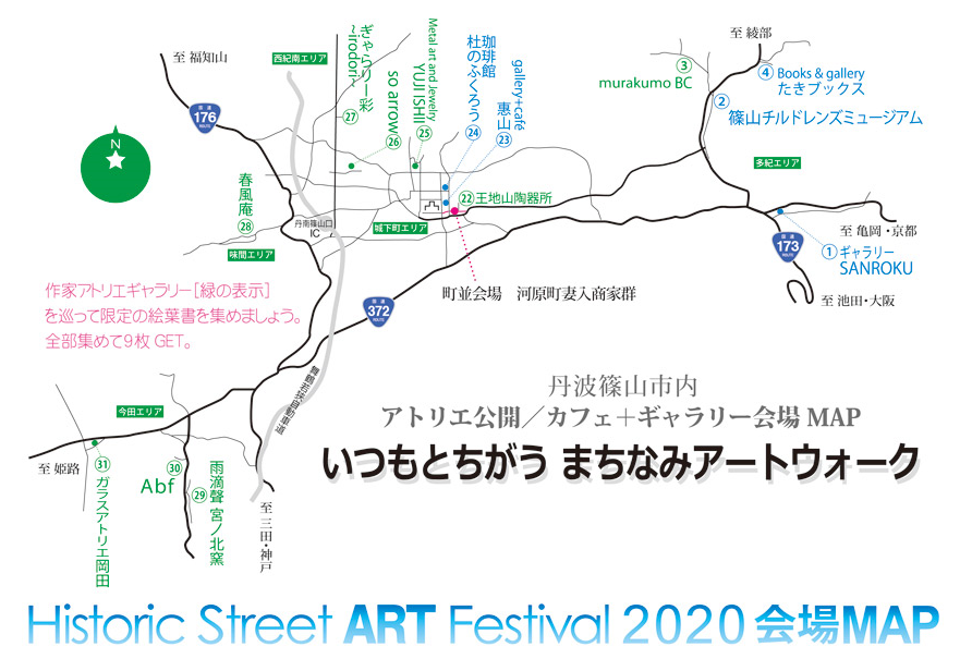 また、会場が分散されていて、河原町だけでなく、多紀・西紀南・味間・今田でも実施されます。