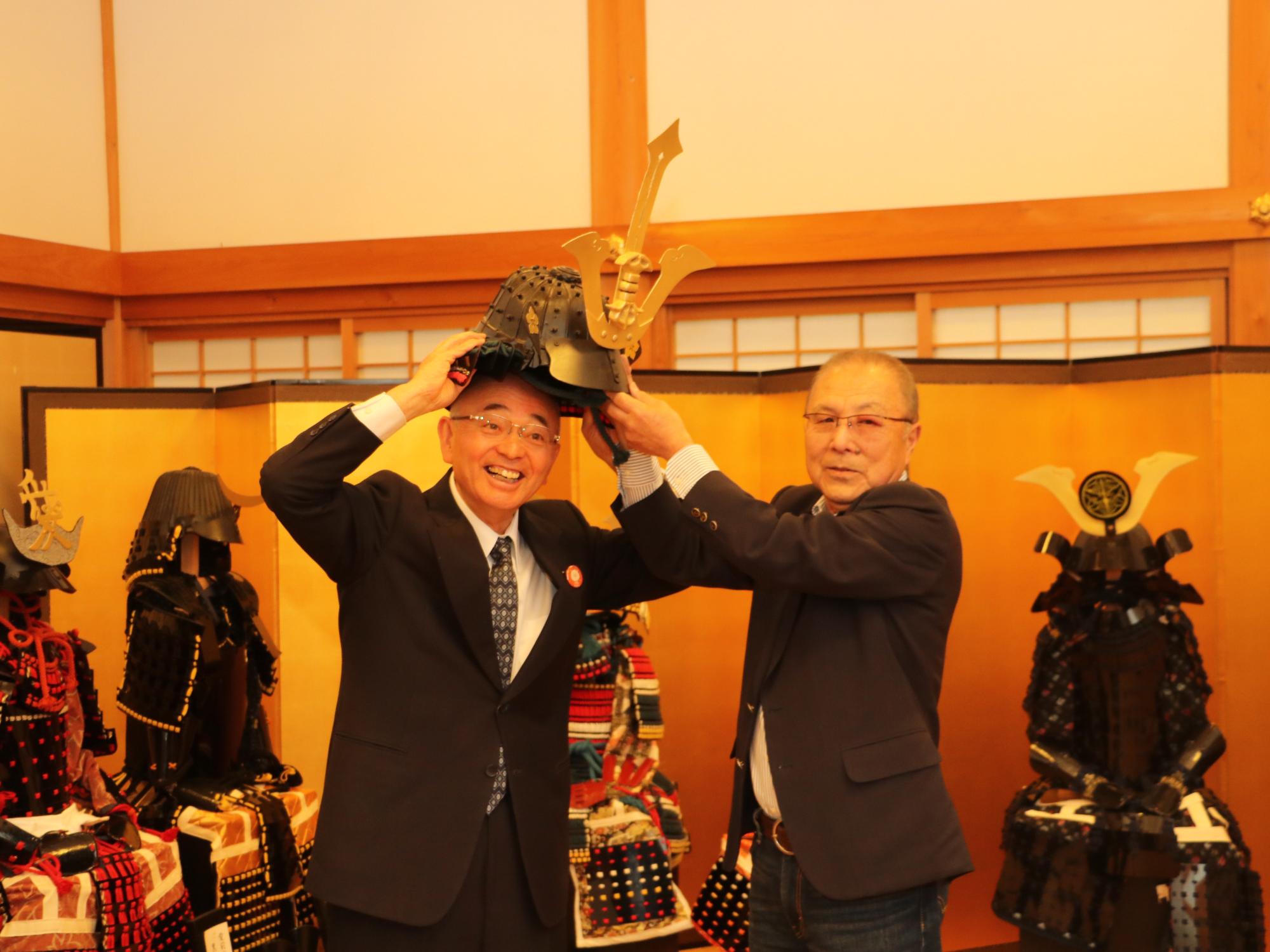 丹波篠山市民の時本昭男(てるお)さんから手作り甲冑をご寄付いただきました。