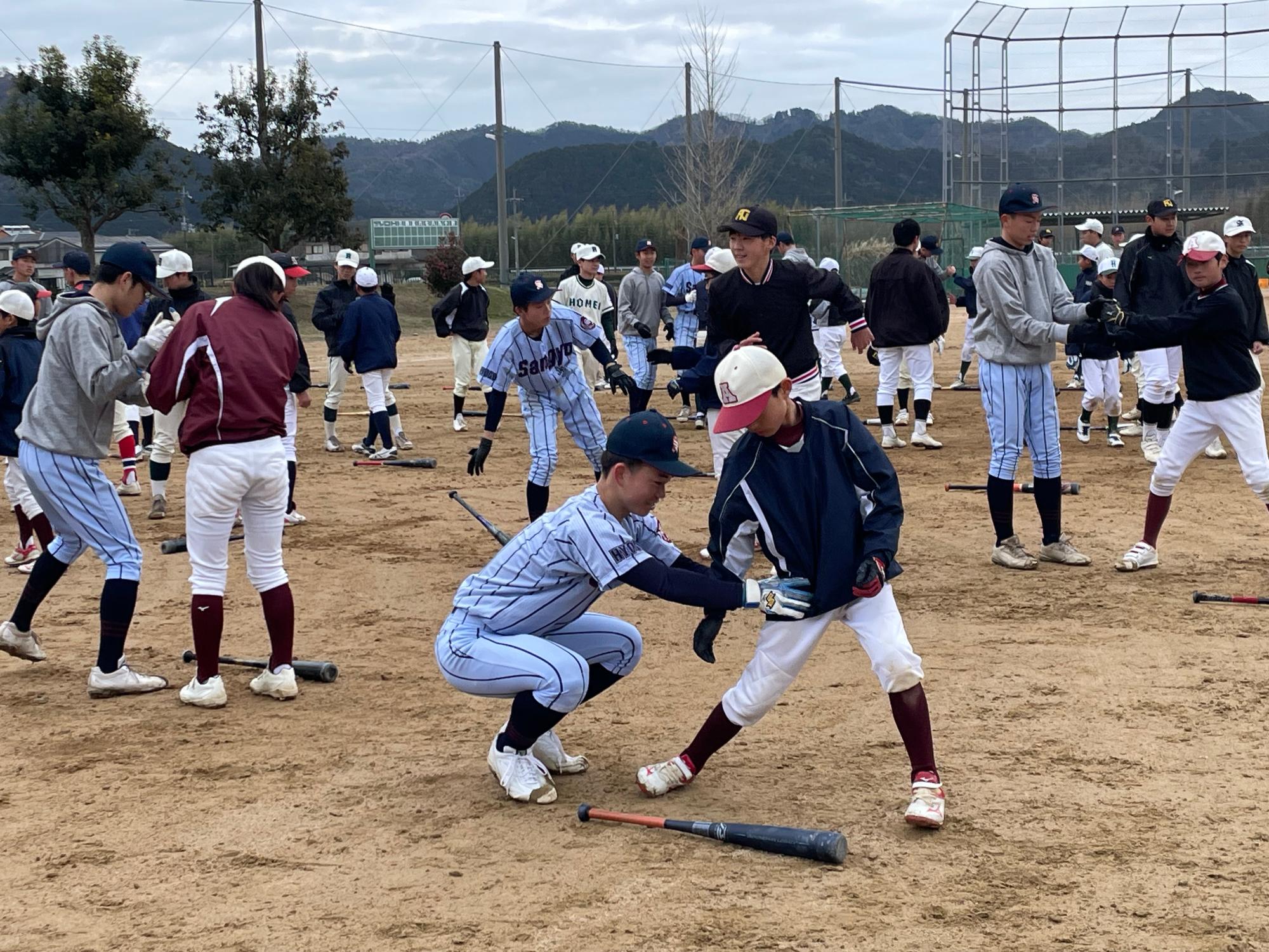 篠山中学校のキャプテン村上隼斗くんは、「高校生から丁寧に分かりやすく教えてもらい、守備の捕球方法や足の動かし方がよく分かりました。将来は地元の高校から甲子園出場を目指します!」と力強く語ってくれました。