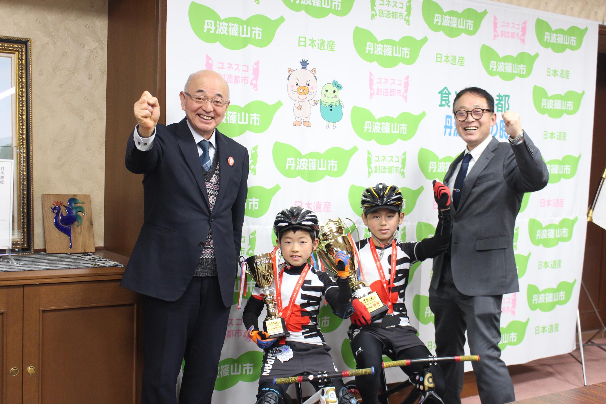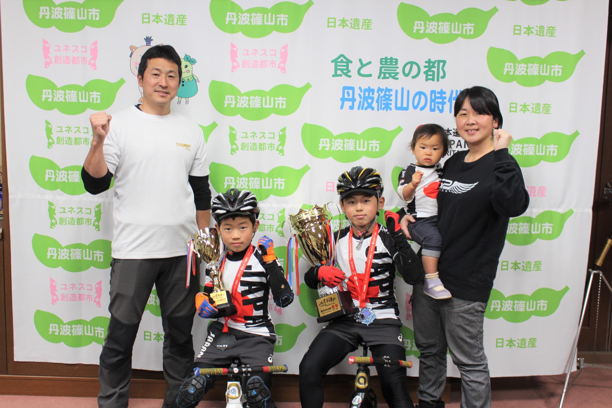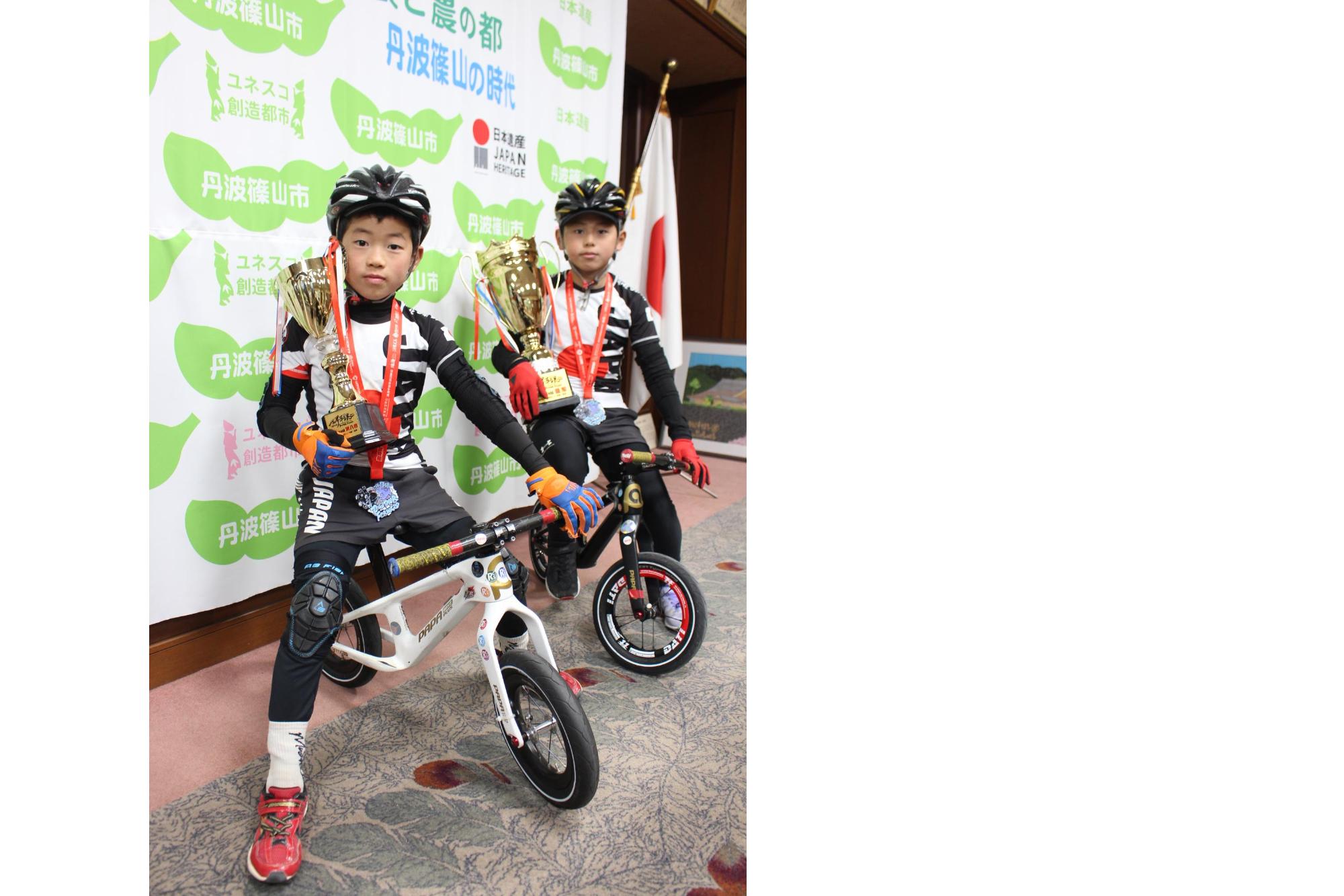 ランバイクの片桐大誠さん(味間小4年生)、片桐司道さん(味間小2年生)兄弟が、中国・広東州珠海(ズーハイ)で開催された「ランバイク世界選手権2023-24大会」に出場し、結果報告に来てくれました。