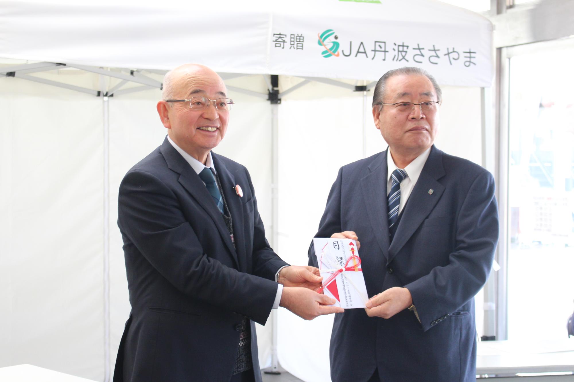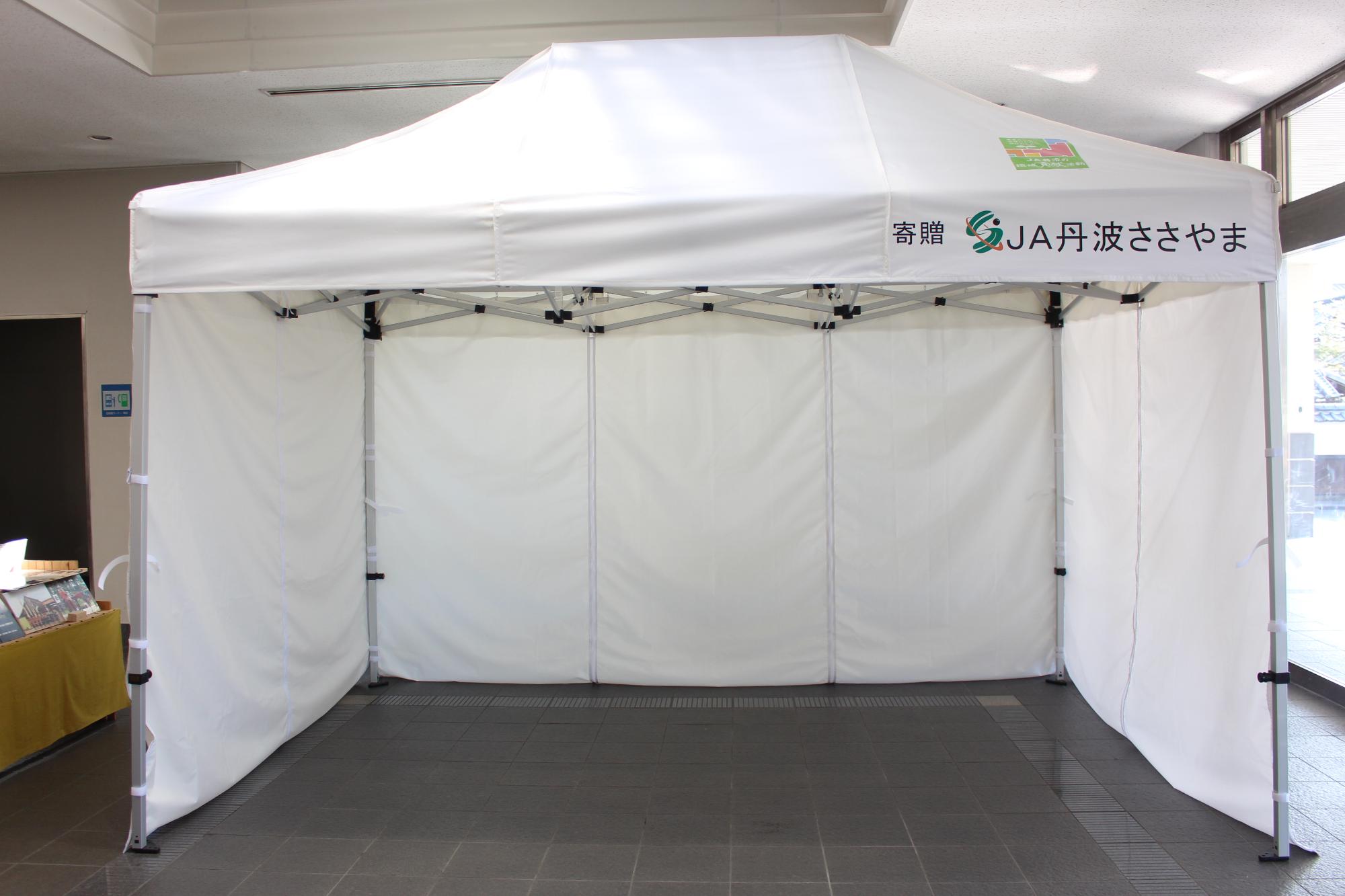 このたび、丹波ささやま農業協同組合と、全国共済農業協同組合連合会兵庫県本部から、災害発生時などに活用できる「折り畳み式テント」一張りを寄附いただきました。