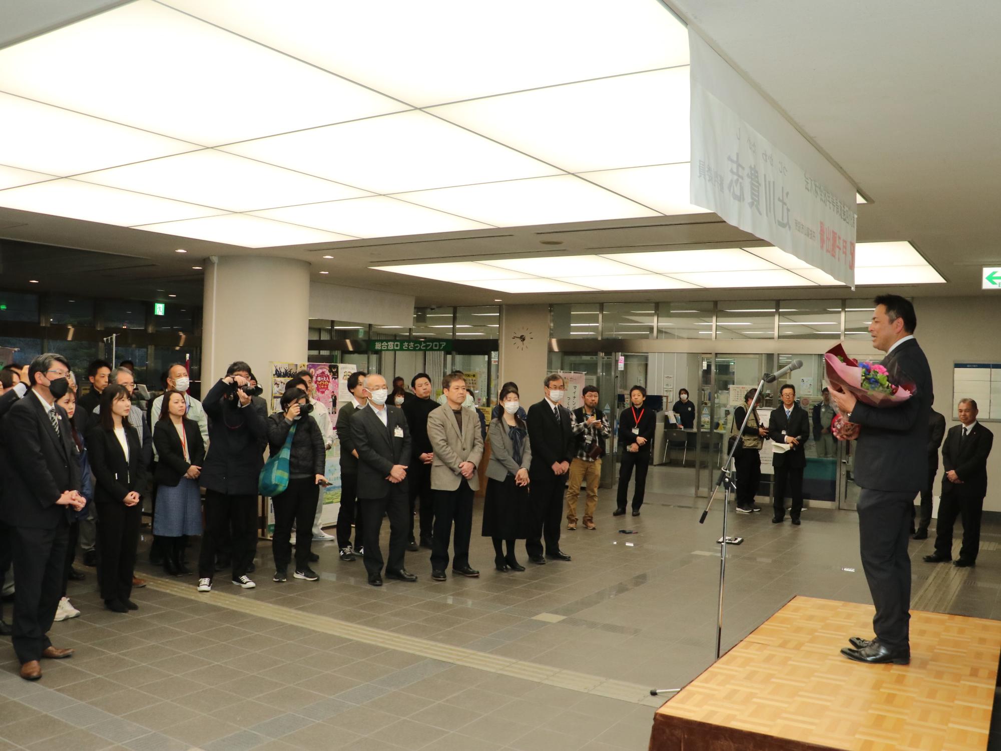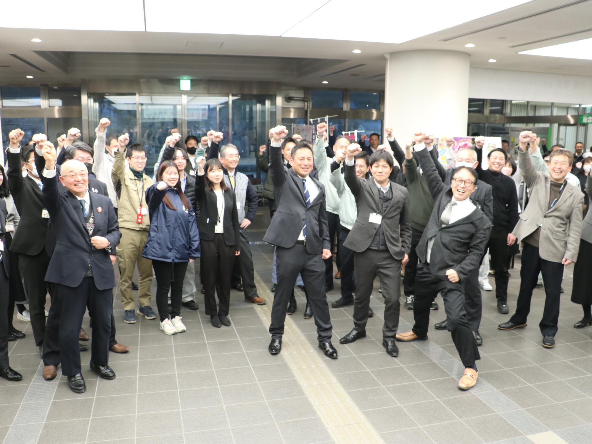 昨日は、市役所市民ホールで壮行会を開催。笑顔いっぱいで激励しました。