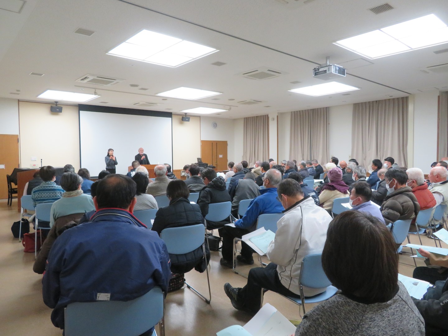 平日の夜の講演でしたが、100名を超える多くの参加があり、熱心に朝治さんの講演に耳を傾けられていました。