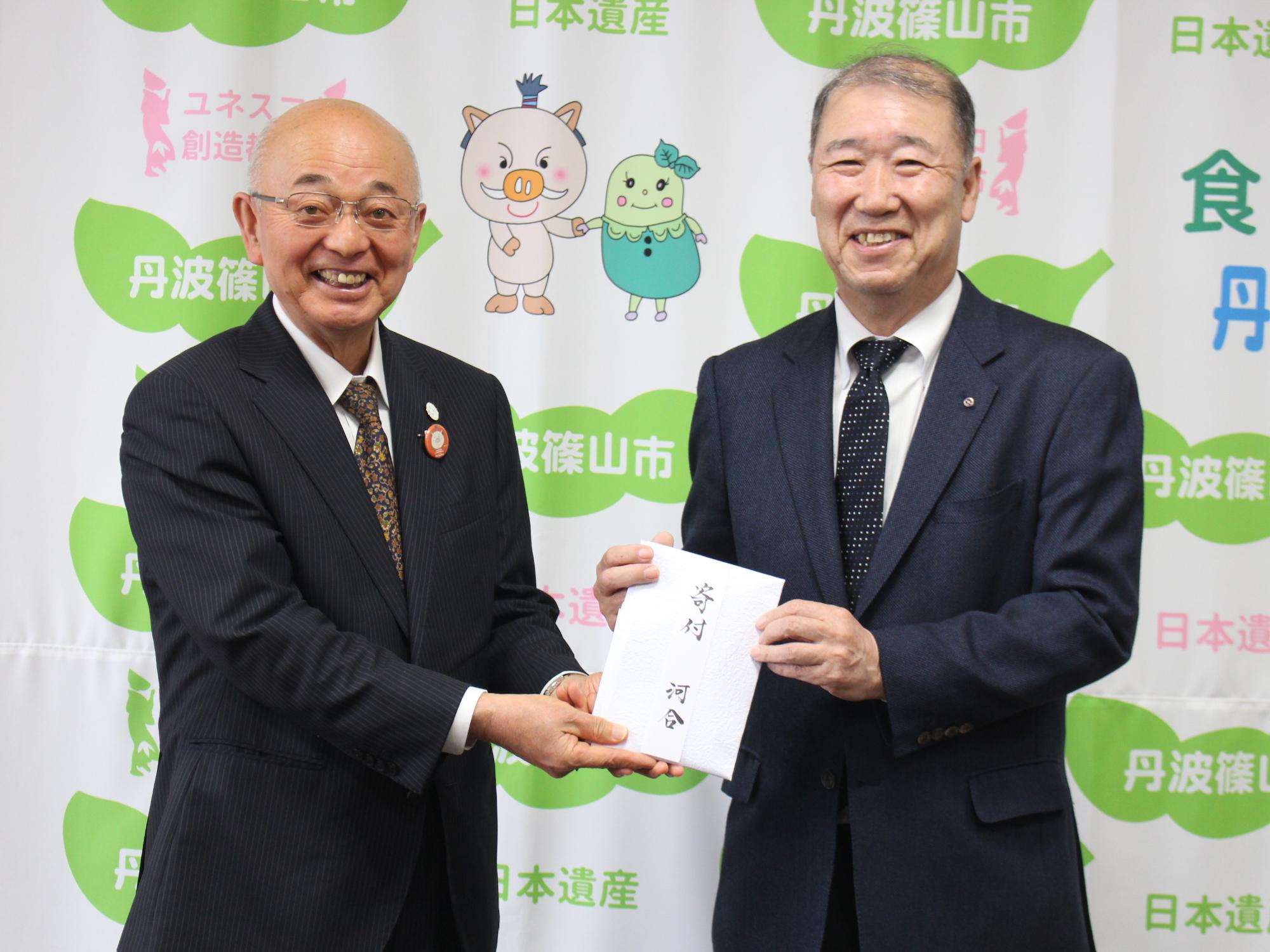 河合迪雄さんのご長男 河合岳雄さんから、丹波篠山ふるさと応援寄付金として100万円のご寄附を頂きました。