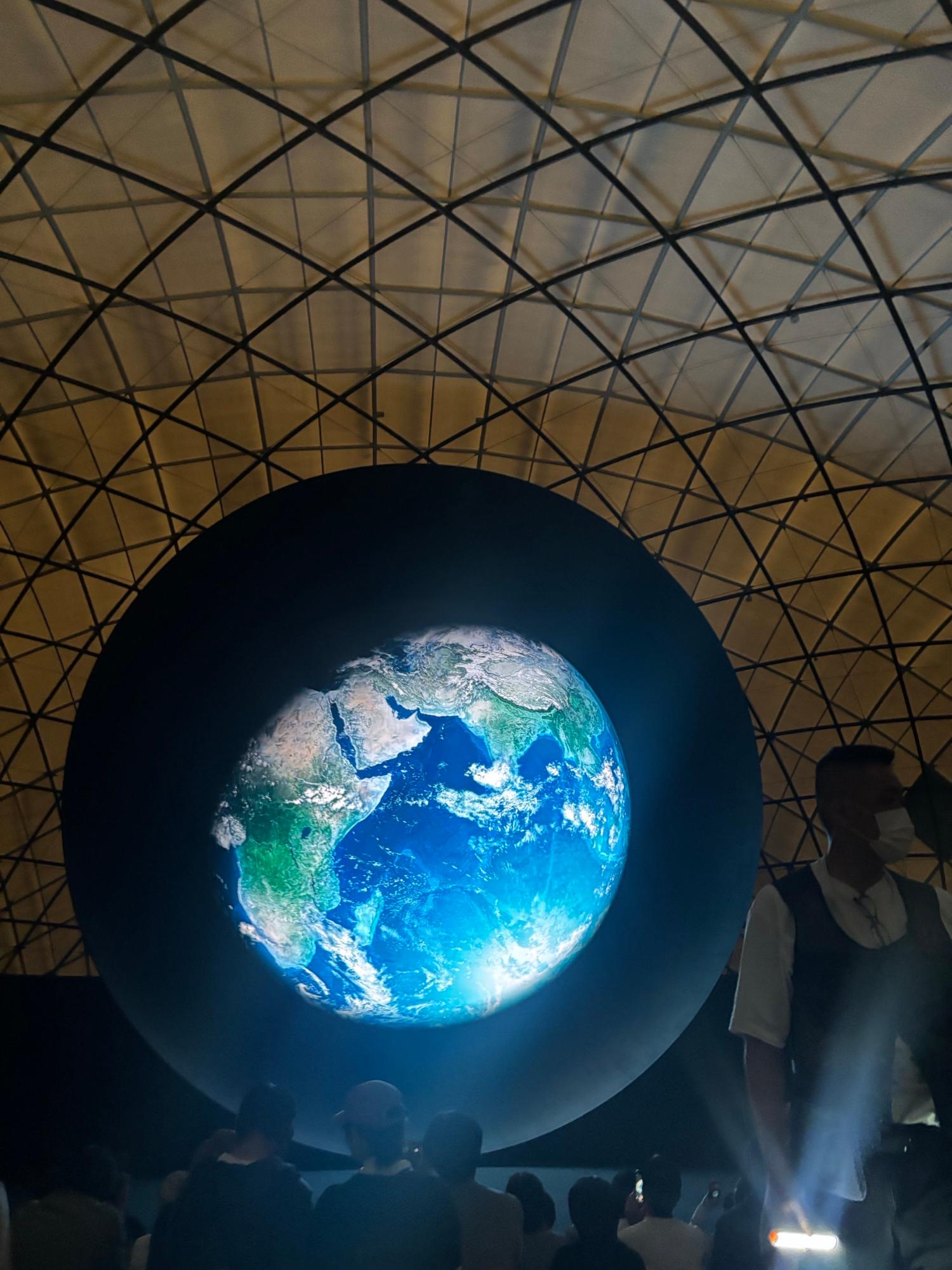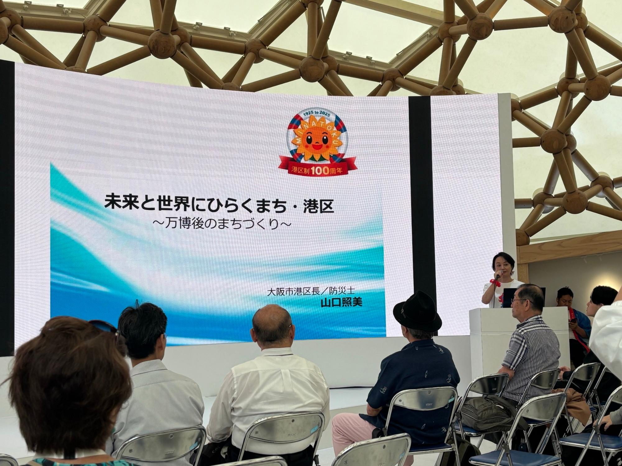 このドームはサラヤ株式会社のパビリオンで、「海の蘇生」をテーマに環境に配慮した材料、先端技術を用いた建築でつくられています。代表の更家悠介さんは青年会議所で全国的に活躍された方です。