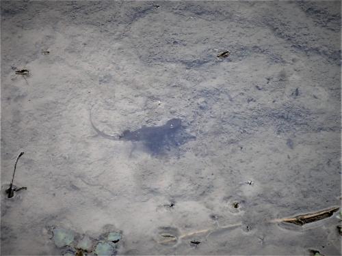 モリアオガエルの卵の下にはアカハライモリがたくさんいました。