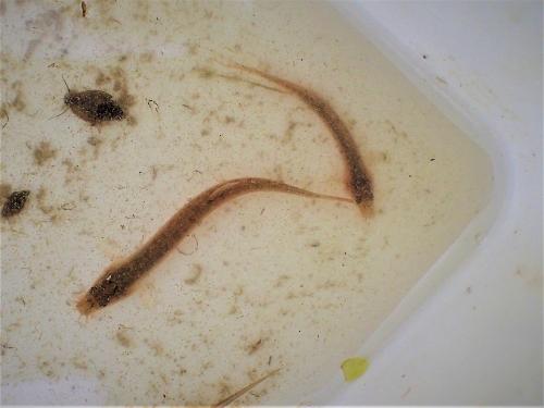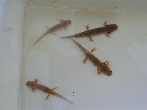 山林に近い江では、セトウチサンショウウオの幼生が見つかりました。