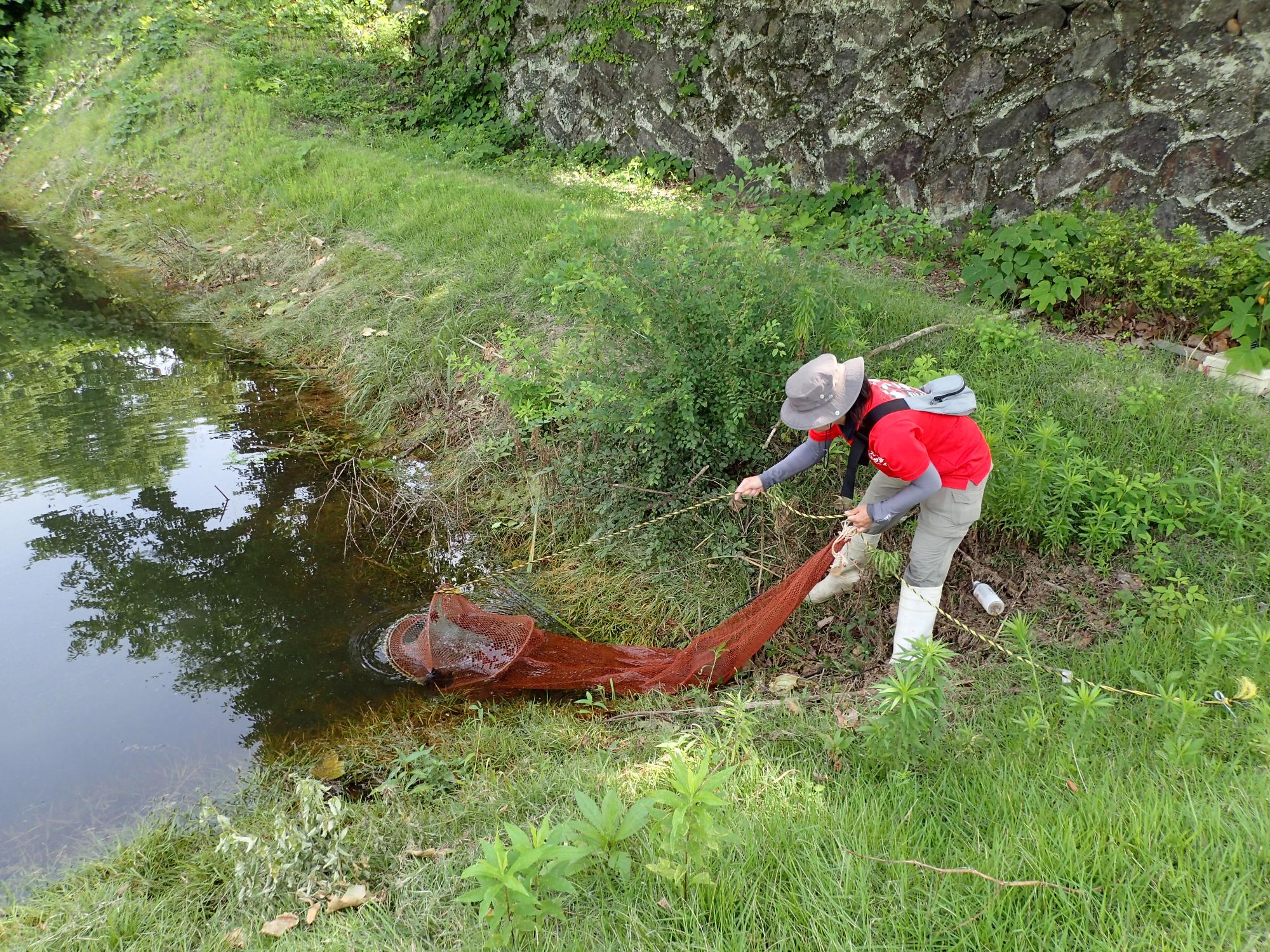 市、事業者、神戸大学、市民有志らでつくる「農都ささやま外来生物対策協議会」(会長=亀崎直樹・岡山理科大学生物地球学部教授)が7月19・20日、篠山城跡のお堀で外来種ミシシッピアカミミガメの一斉捕獲調査を行いました。