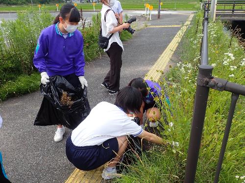 今年は3年生の整美委員6人と先生4人に駆除活動に協力していただきました。