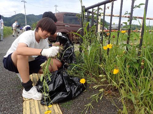 6月22日(月曜日)、市立篠山中学校東側の市道にて特定外来生物「オオキンケイギク」の駆除活動を行いました。