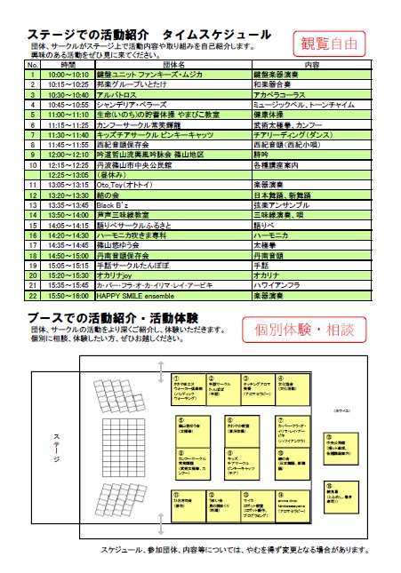 参加団体、スケジュール、ブース配置等について一部変更が生じる場合、このページ掲載の情報(チラシ)を随時更新しています。紙のチラシをご覧いただいている場合は、一部記載内容が異なる場合があります。