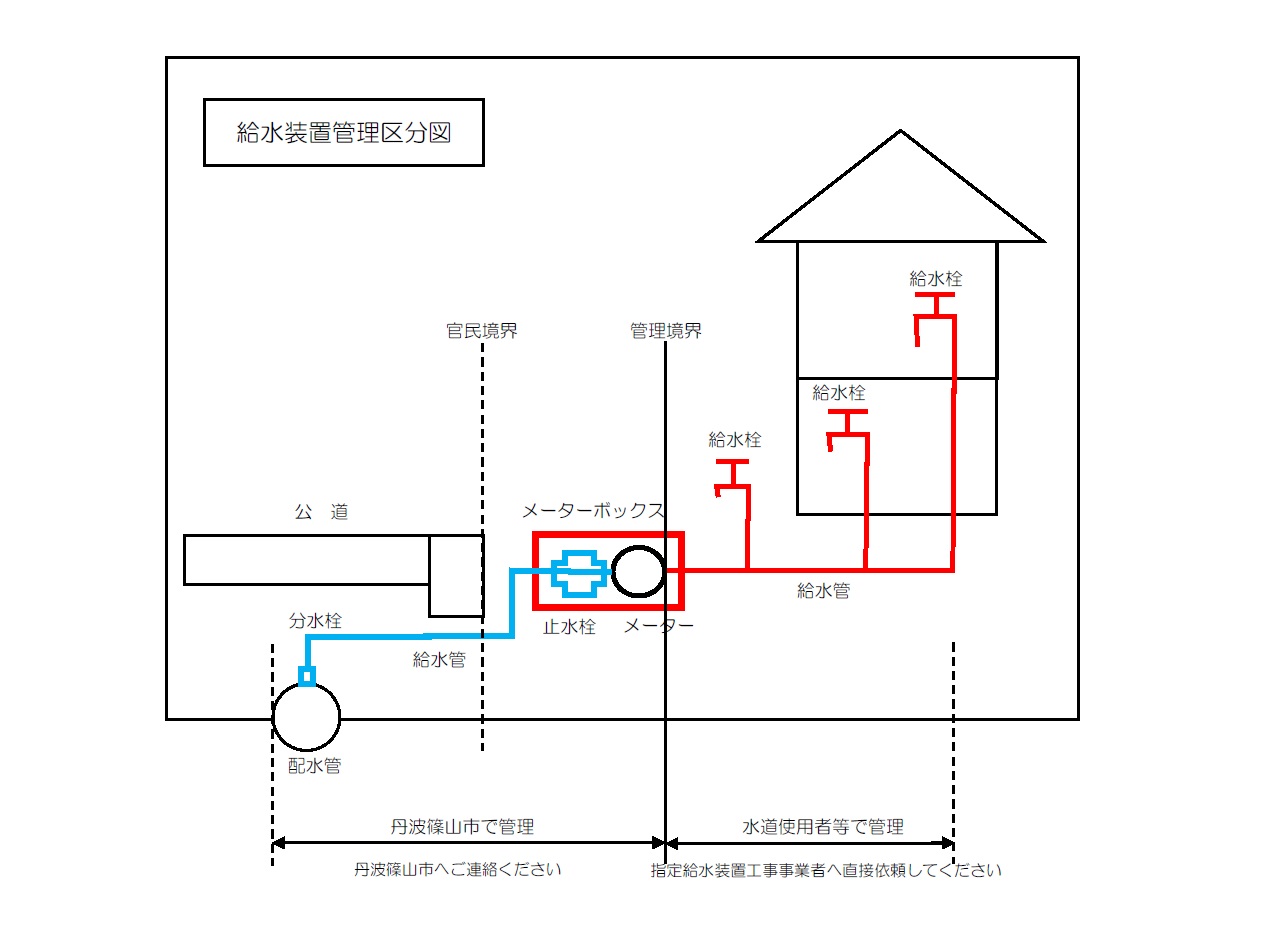 ●丹波篠山市が管理する部分・・・分水栓、メーターまでの給水管、止水栓