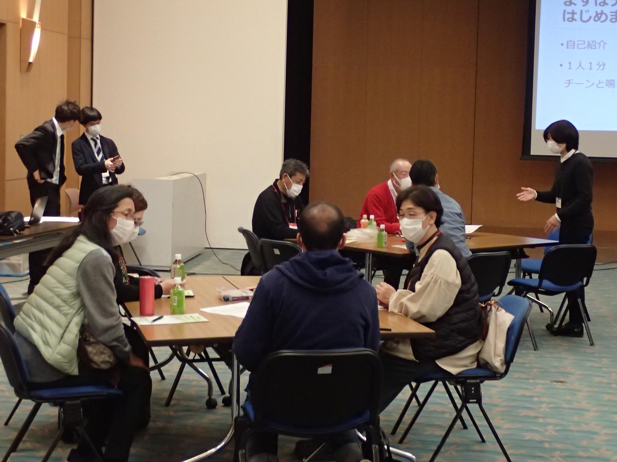 その後は、4~6人ずつ分かれたテーブルで対話を進めました。「もっと知りたいこと・疑問」、「やってみたいこと・あったらいいな」など感想やアイディアを付箋に書き込んで共有していきました。