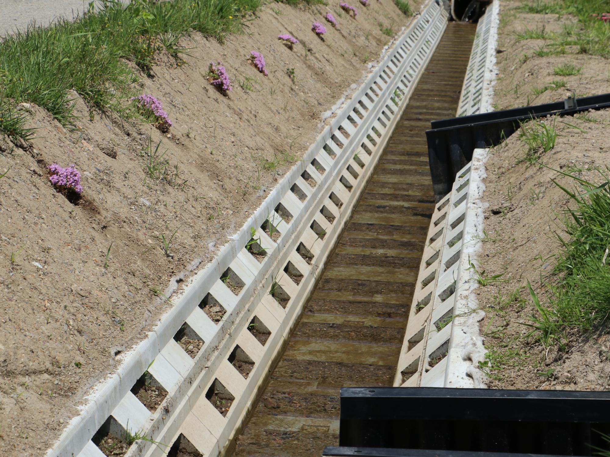 「土水路(素掘り水路)」や「穴あきタイプ」は生きものや植物が育つ環境を守ることができ、自然や生きものとの共生、生物多様性に配慮しています。