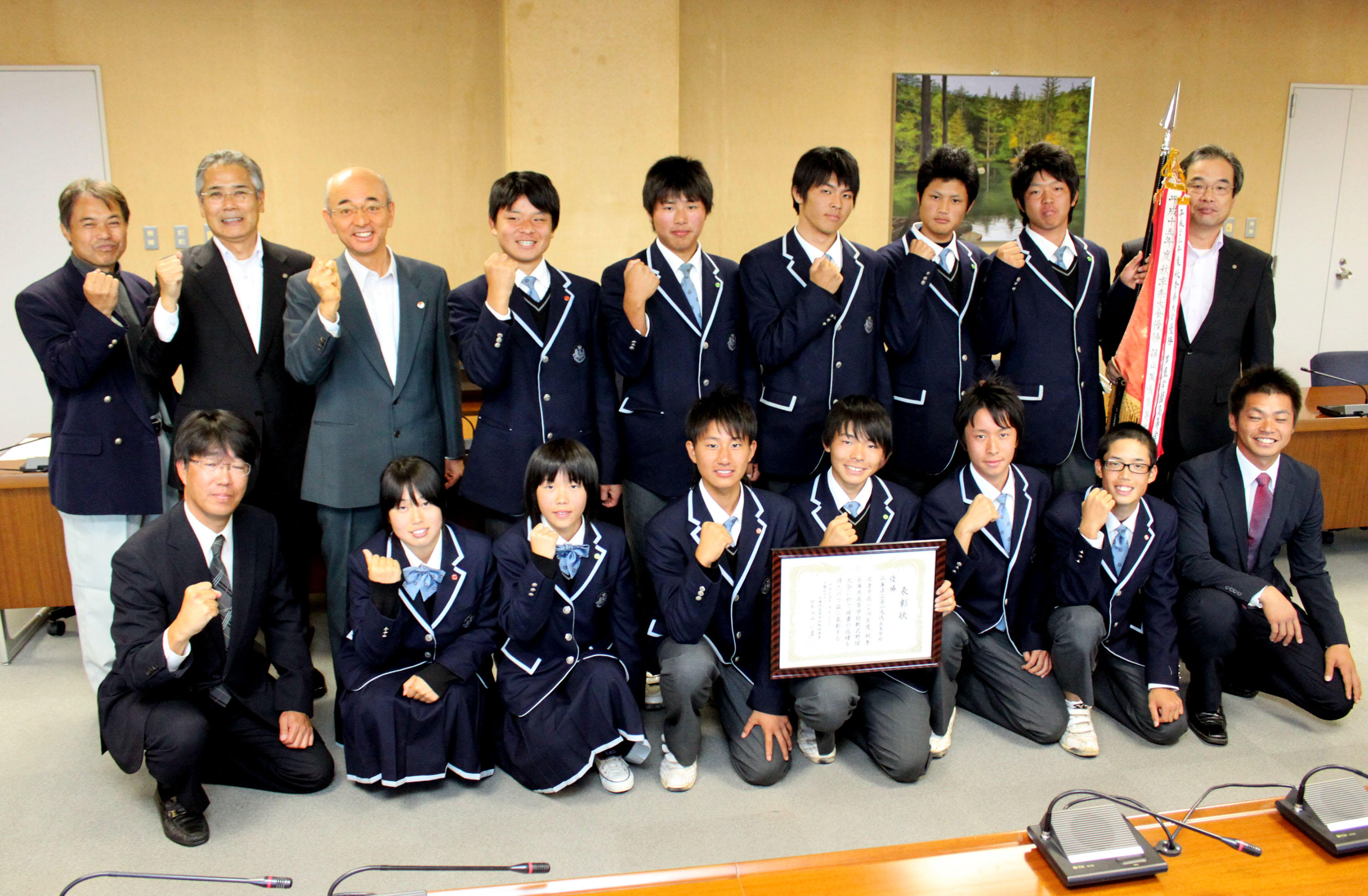 9月から三木市で行われていた秋季県高校軟式野球大会で優勝した、篠山鳳鳴高校の軟式野球部のみなさんが表敬訪問に来られました。