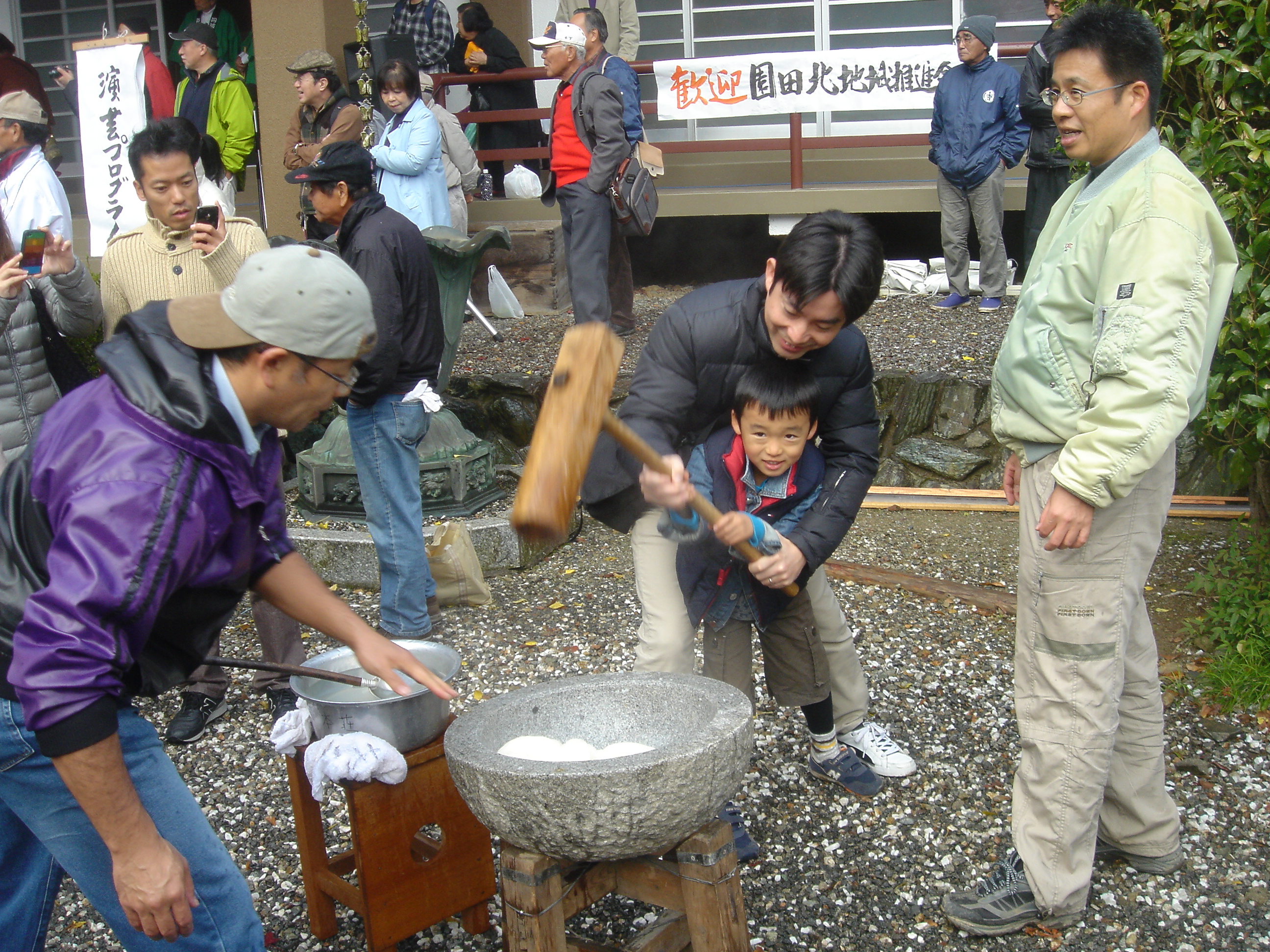 杵で餅つきを楽しむ親子の写真 拡大画像 (JPEG: 2.3MB)