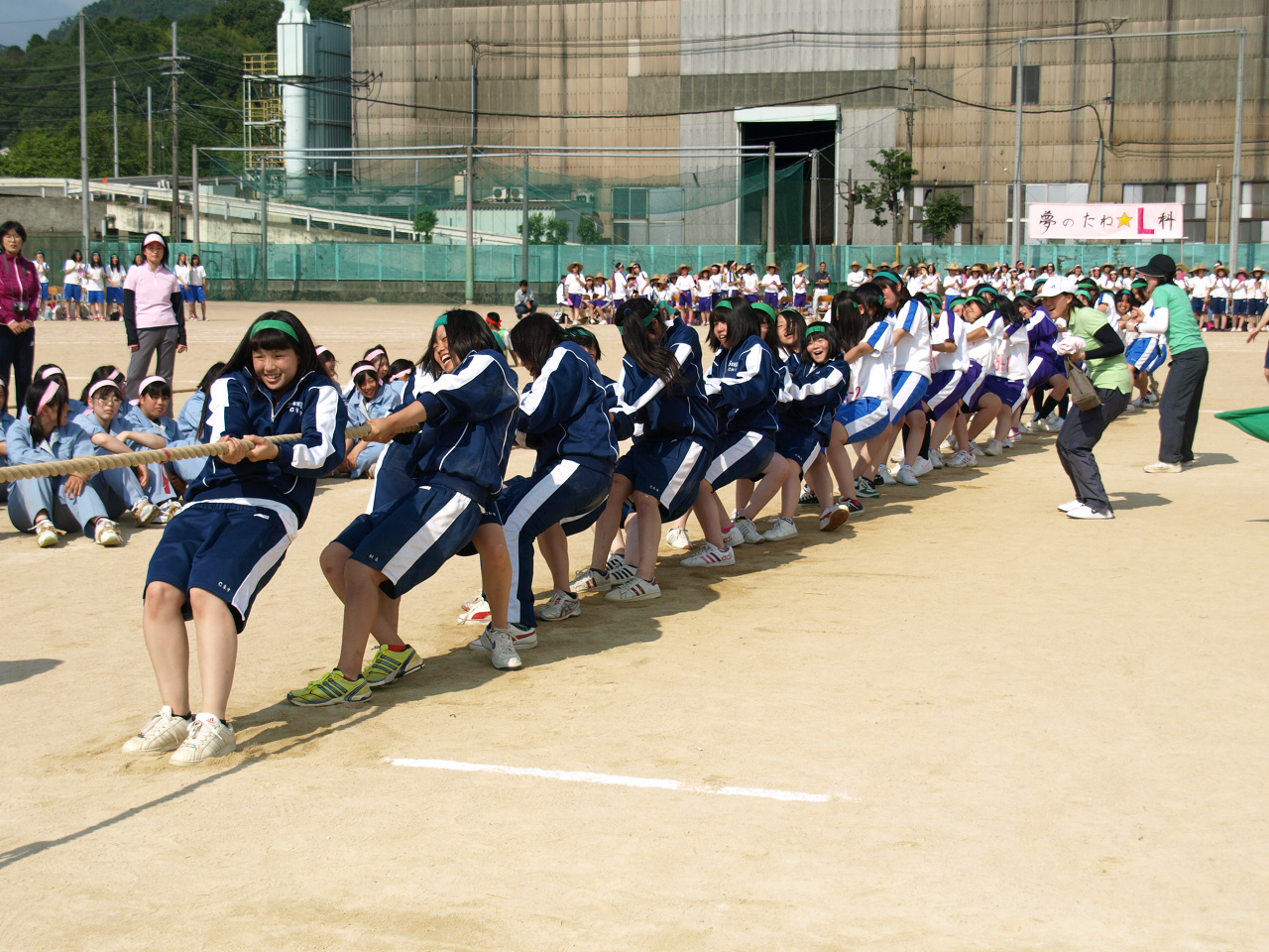 全学年690人が6つのチームに分かれ、障害物競走やリレー、綱引きなどが競われ、テーマどおりのとても白熱した体育祭でした。
