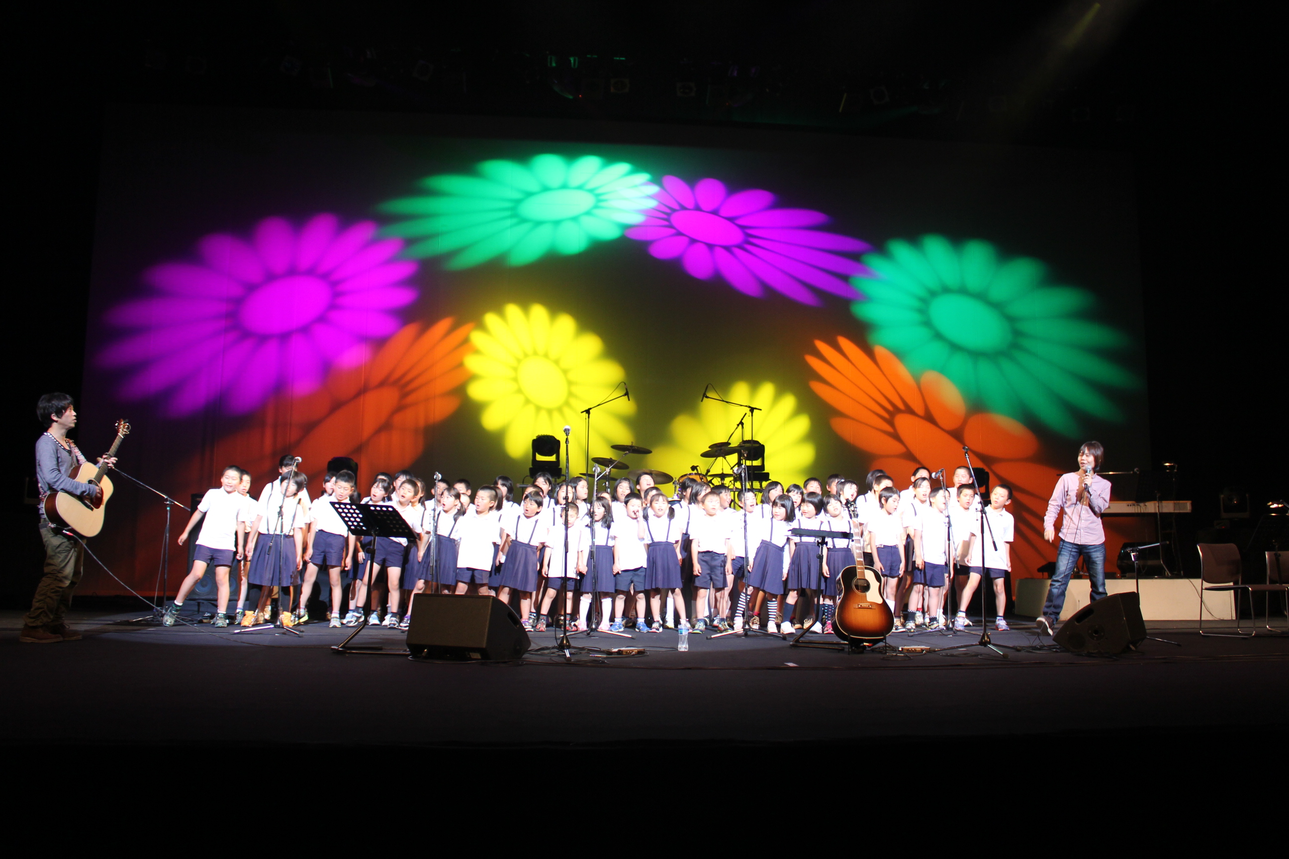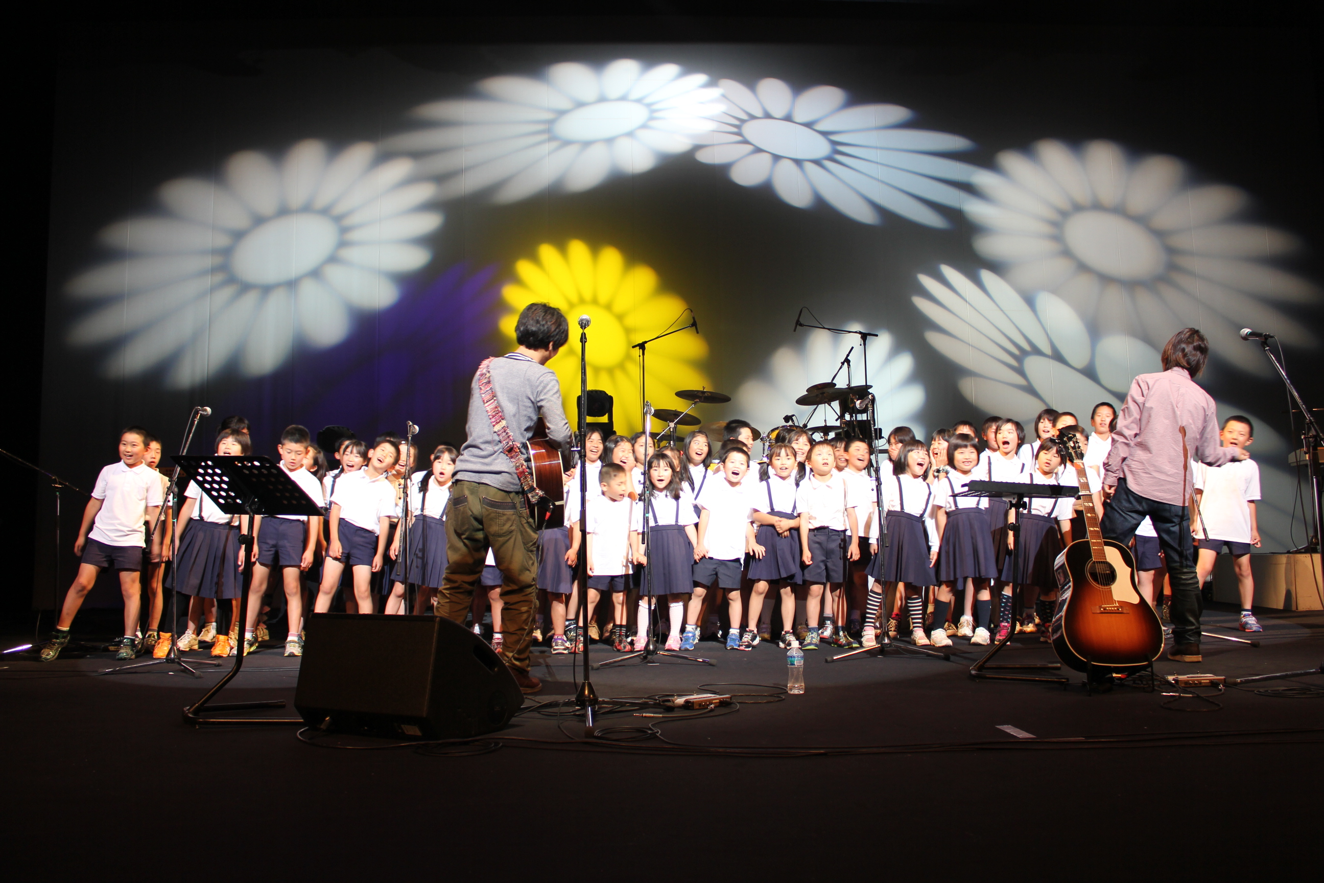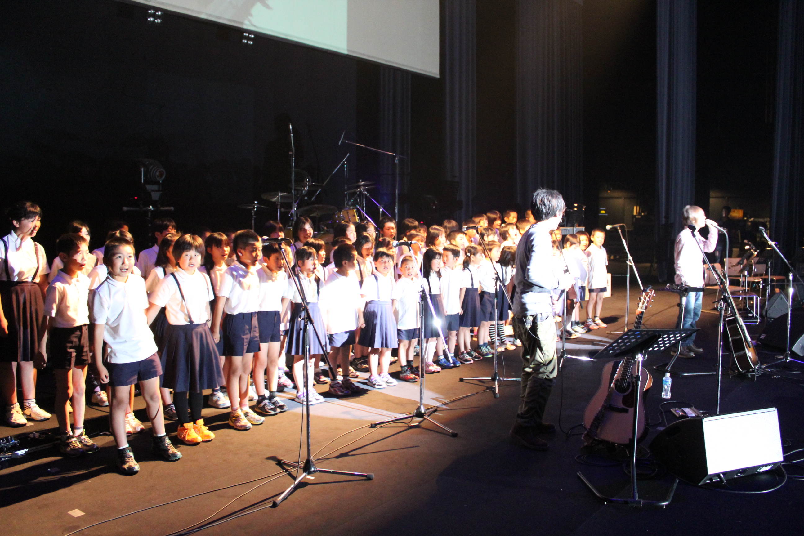 また、当日は古市小学校55人の児童が出演し、ちめいどオリジナル「生命のリレー」と「はんぶんこ」を歌ってくれました。2月に古市小学校でミニライブを行った時、全校児童が一緒に合唱したのに感激して、今回の出演になりました。