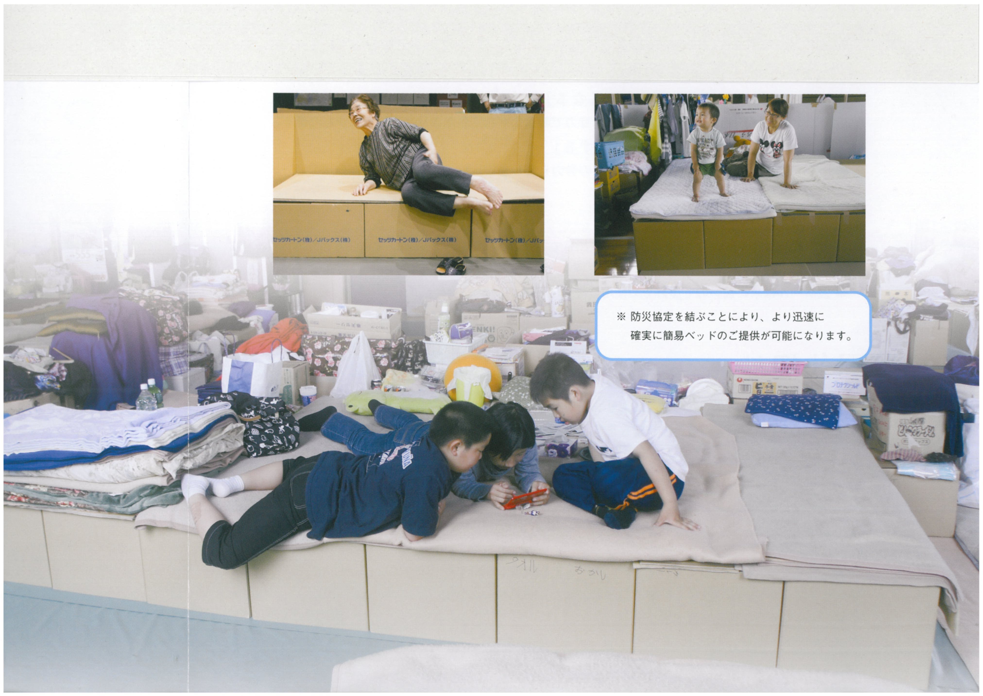 万が一の災害に備え、市では避難所の見直しなどを行い、防災に力を入れているところです。この度、段ボールを中心としたパッケージメーカーのセッツカートン株式会社と支援協力に関する協定を結び、災害時に、避難所に設置する段ボール製の簡易ベッド中心としたダンボール製品を供給していただくこととなりました。