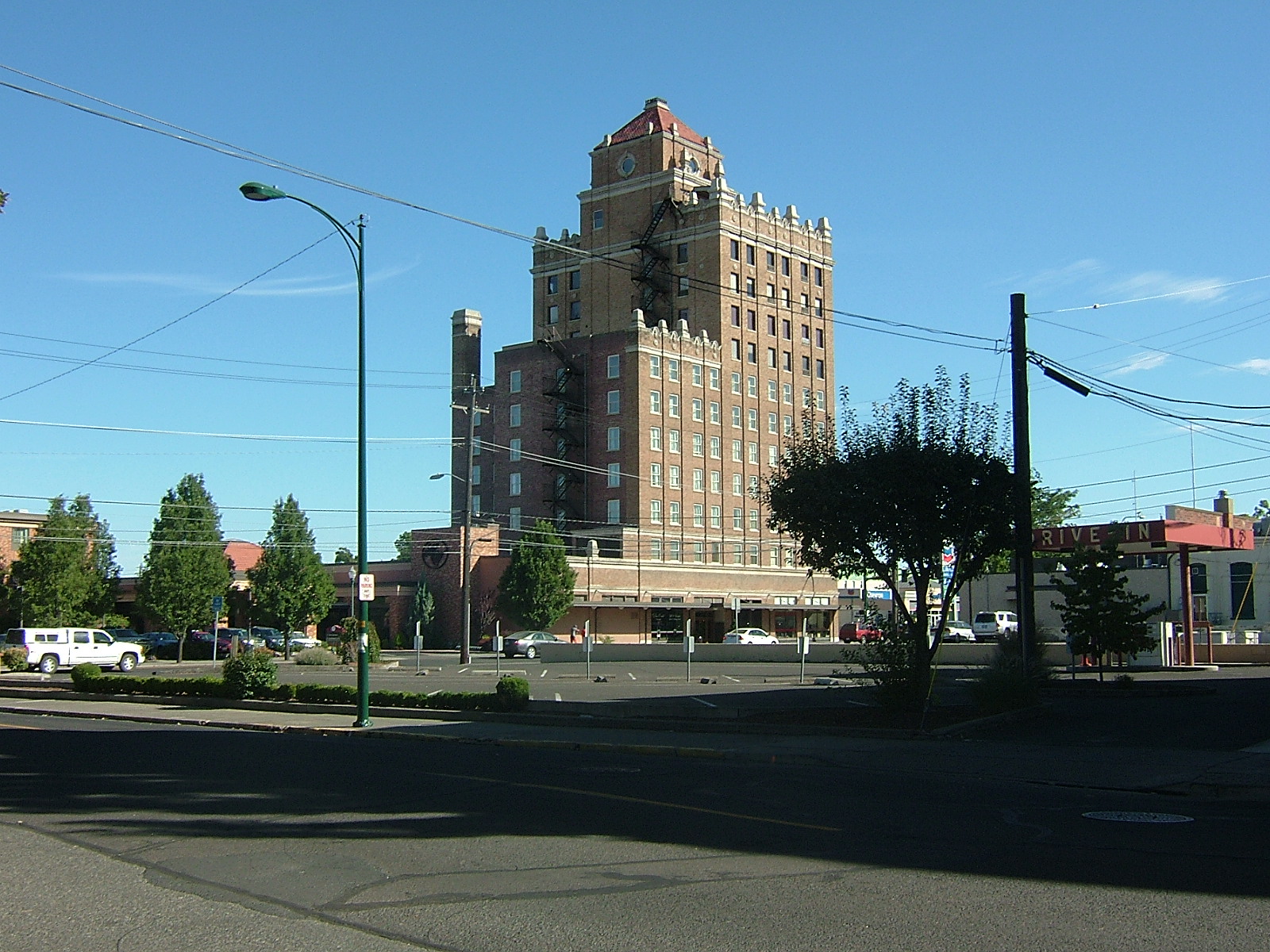 青空の下、大きな建物が建っており周りには車が停止している写真 拡大画像 (JPEG: 600.9KB)