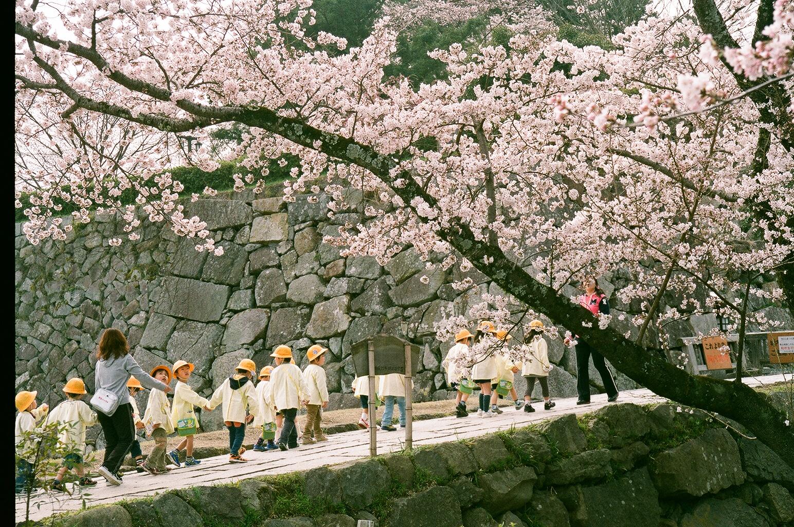 篠山城跡にある満開の桜の下を散歩する園児の写真 拡大画像 (JPEG: 525.2KB)