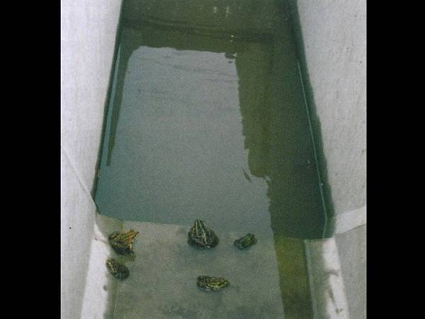 コンクリート溝に落ちて上がれないカエルの写真 拡大画像 (JPEG: 20.7KB)