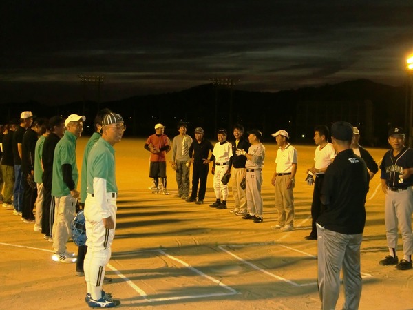 対戦チーム同士で向き合い試合開始の挨拶をしている写真 拡大画像 (JPEG: 72.4KB)