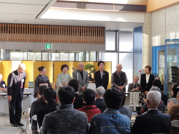 市長と受賞者のみなさんが前に立ち、その様子を椅子に座っている方々が見ている写真 拡大画像 (JPEG: 111.7KB)