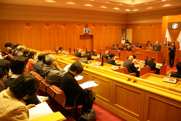 傍聴席右後方より、市議会での一般質問の様子を映している写真 拡大画像 (JPEG: 89.0KB)