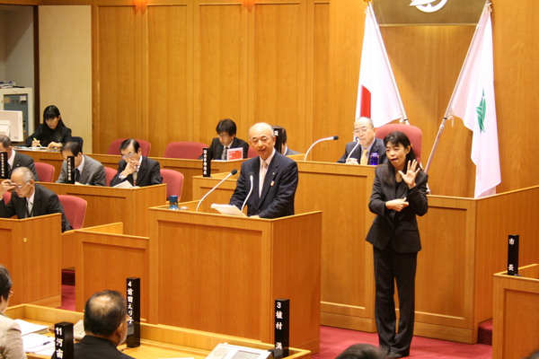 議場で篠山市議会初の手話をして頂きました