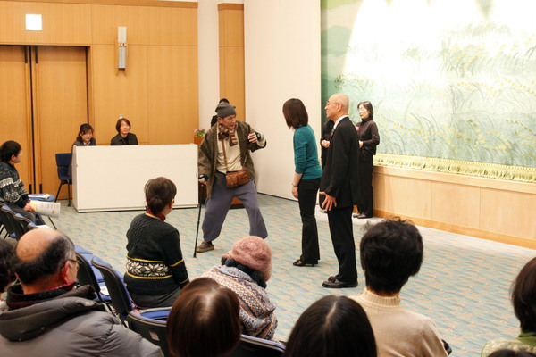 観客が劇を見て笑っている写真 拡大画像 (JPEG: 119.9KB)