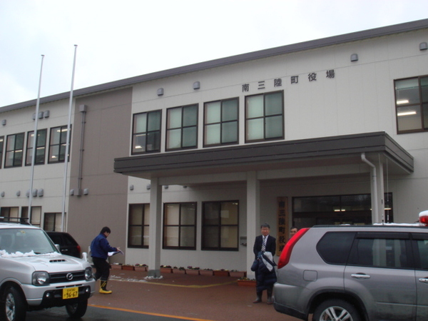 車が2台が止まっている南三陸町役場の外観写真 拡大画像 (JPEG: 118.6KB)