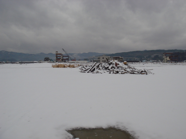 瓦礫の上や広場全体に雪が積もっている写真 拡大画像 (JPEG: 132.3KB)