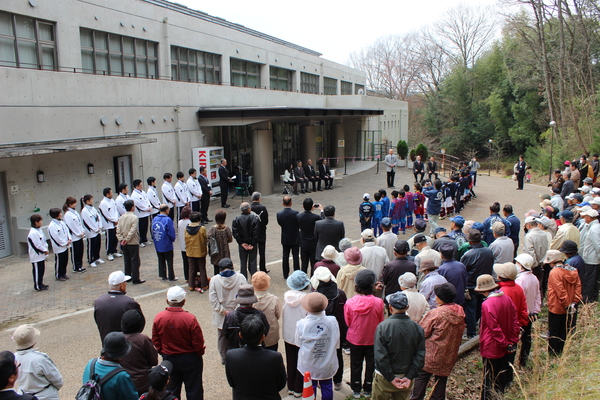 西紀運動公園 再オープンのセレモニーに沢山の市民の方が参加している全体の様子を後方から写している様子の写真 拡大画像 (JPEG: 211.4KB)