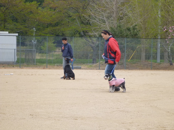 2匹の犬が男性と女性にそれぞれ訓練を受けている写真 拡大画像 (JPEG: 141.2KB)