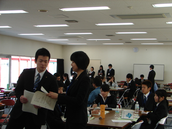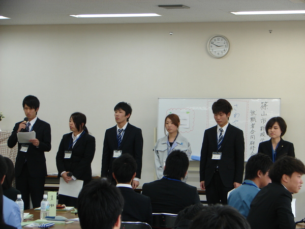 オーリス株式会社、共栄樹脂株式会社、医療法人社団紀洋会、株式会社小田垣商店、篠山証券株式会社、フルヤ工業株式会社、篠山市役所、株式会社岩崎電機製作所、ケンミン食品株式会社、株式会社藤枝研磨工業所に就職された57名の皆様が、職場での心がまえ、言葉遣いと敬語、電話対応、来客対応、自己啓発と自己管理、指示命令の受け方と報告の仕方などを学びました。