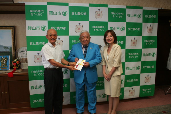篠山市で不動産業を営む有限会社篠山商業開発 代表取締役会長の松本 和之さんから100万円のふるさと応援寄付をいただきました。