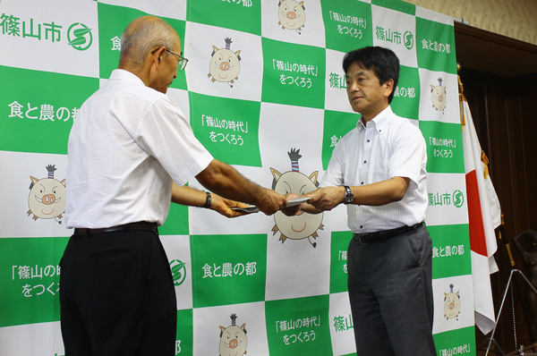 角野会長は「篠山市の歴史的なまちなみ、田園景観、そしてまわりの山なみなど、美しいまちなみが篠山市の最大の特徴です。これをしっかり市民に理解して頂いて、市民、事業者、そして行政が一体となって、日本で一番美しいまちをつくっていくものにしてほしい」と語られました。