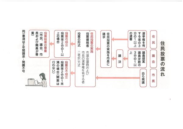 住民投票とは、市や市民に大きな影響のある事柄について、直接住民にその意思を問うことを言います。