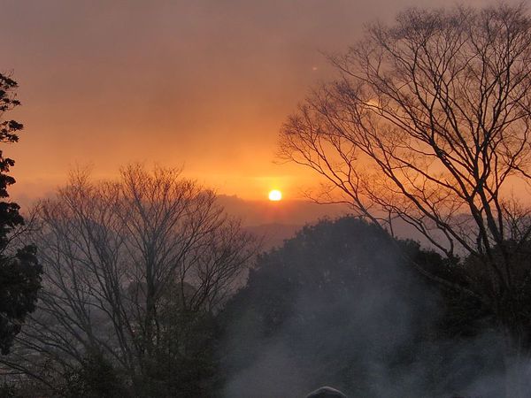 権現山初日を迎える会の現場で撮影した山の頂上から見える初日の出の写真 拡大画像 (JPEG: 48.9KB)