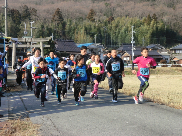 鳥居をバックにスタートした今田元旦マラソンに参加した市民の写真 拡大画像 (JPEG: 283.6KB)