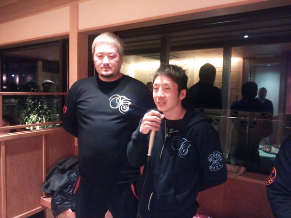 冴城トレーナーの横で角谷 淳志選手がマイクを持ち決意を語っている写真 拡大画像 (JPEG: 41.9KB)