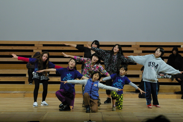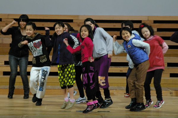 子供達がダンスを楽しそうに右手にポーズ写真 拡大画像 (JPEG: 169.0KB)