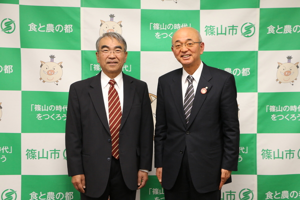 金出 武雄さんと酒井市長が並んで立っている写真 拡大画像 (JPEG: 127.5KB)