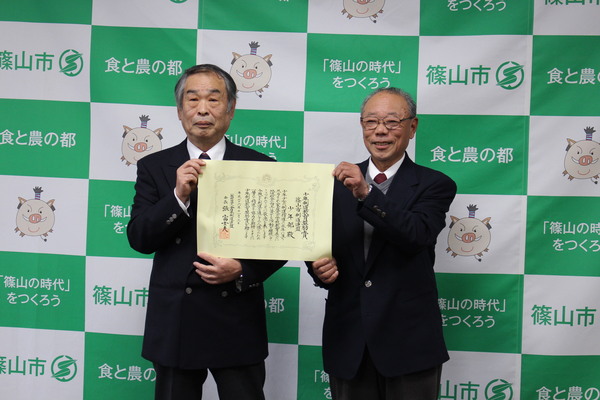 篠山市剣道連盟少年部が永年にわたり少年少女の剣道育成に尽くされたことに対し、全日本剣道連盟より少年剣道教育奨励賞を受賞され、受賞報告に来られました。