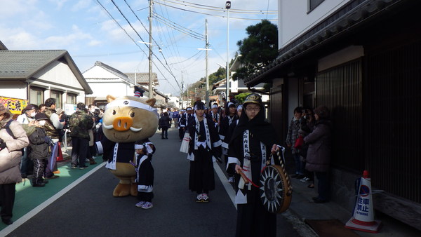 今年の12月14日(日曜)は、時折、雪の舞う寒い一日でしたが、子ども義士行列では、カメラを構えた多くのキャラリーとともに、子どもたちが小一時間ほど地域を練り歩きました。