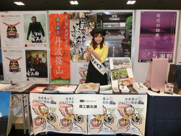篠山市からは、農都創造部商工観光課の押田 健一課長、小林 由佳さん、丹波篠山観光大使の中村 優衣さんの3名が参加し、地酒を紹介したり、わが町PRをしました。