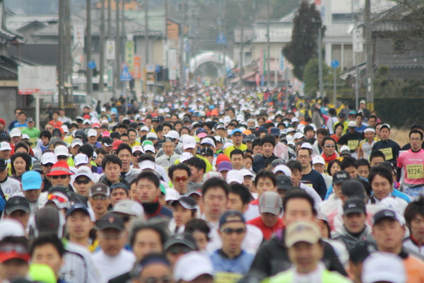 胸にゼッケンをつけた大勢の参加者たちがスタートしている写真 拡大画像 (JPEG: 187.2KB)