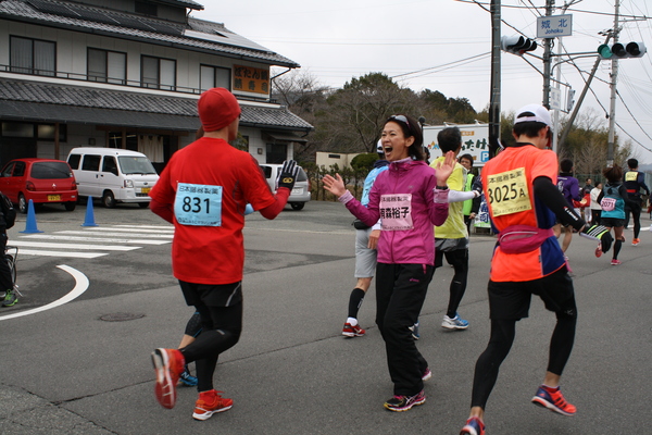 沿道では、市民あげての応援、演奏、太鼓、チョコレート、しし汁、それに完走したら、中高校生が完走メダルをかけてくれます。